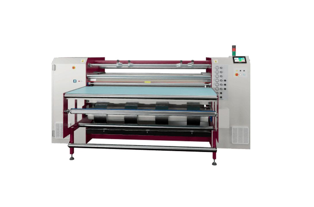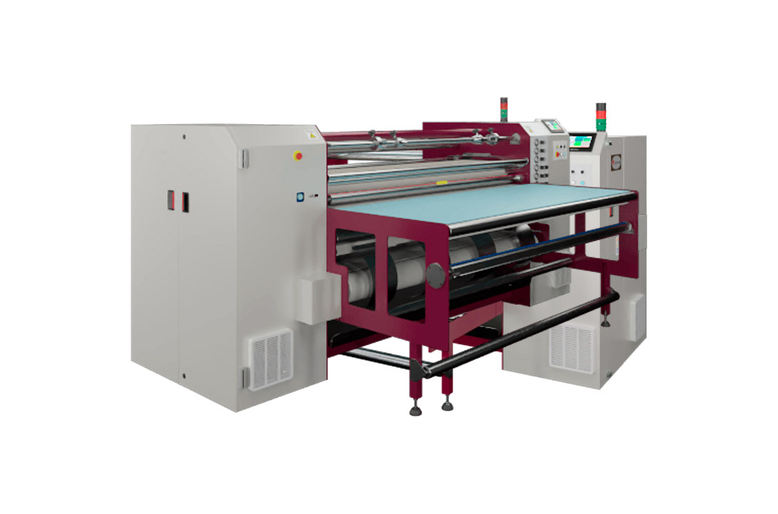 La T03-1800 es una calandra polivalente diseñada para impresión por transferencia, reactivación de tintas y termofijado, ideal para trabajar tanto en rollo como en piezas, con papel en rollo o en hojas. Su cilindro de 350 mm de diámetro y 1.800 mm de ancho proporciona un área de trabajo de 1.650 mm, asegurando resultados precisos, uniformes y de máxima calidad.